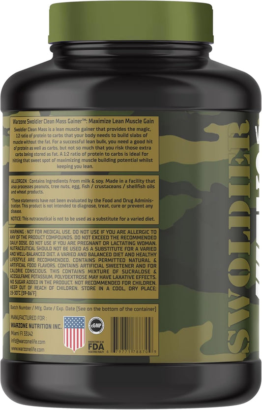 Warzone Swoldier Clean Mass Gainer – 6Lbs, Milk Chocolate