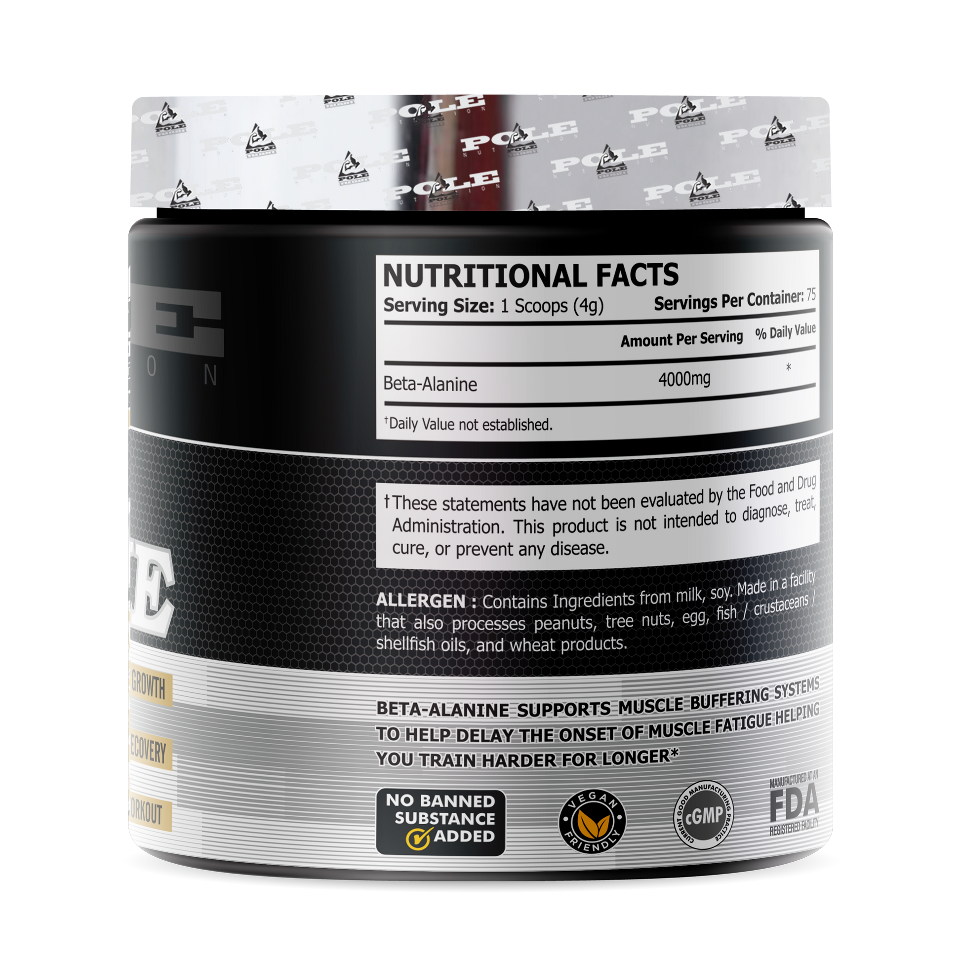 Pole Nutrition Beta Alanine is your ultimate workout partner, delivering a scientifically supported, all-natural amino acid to enhance endurance, power, and strength. Designed for athletes and fitness enthusiasts, this formula helps you train harder, go longer, and get stronger by delaying muscle fatigue and promoting peak performance during intense exercise sessions.