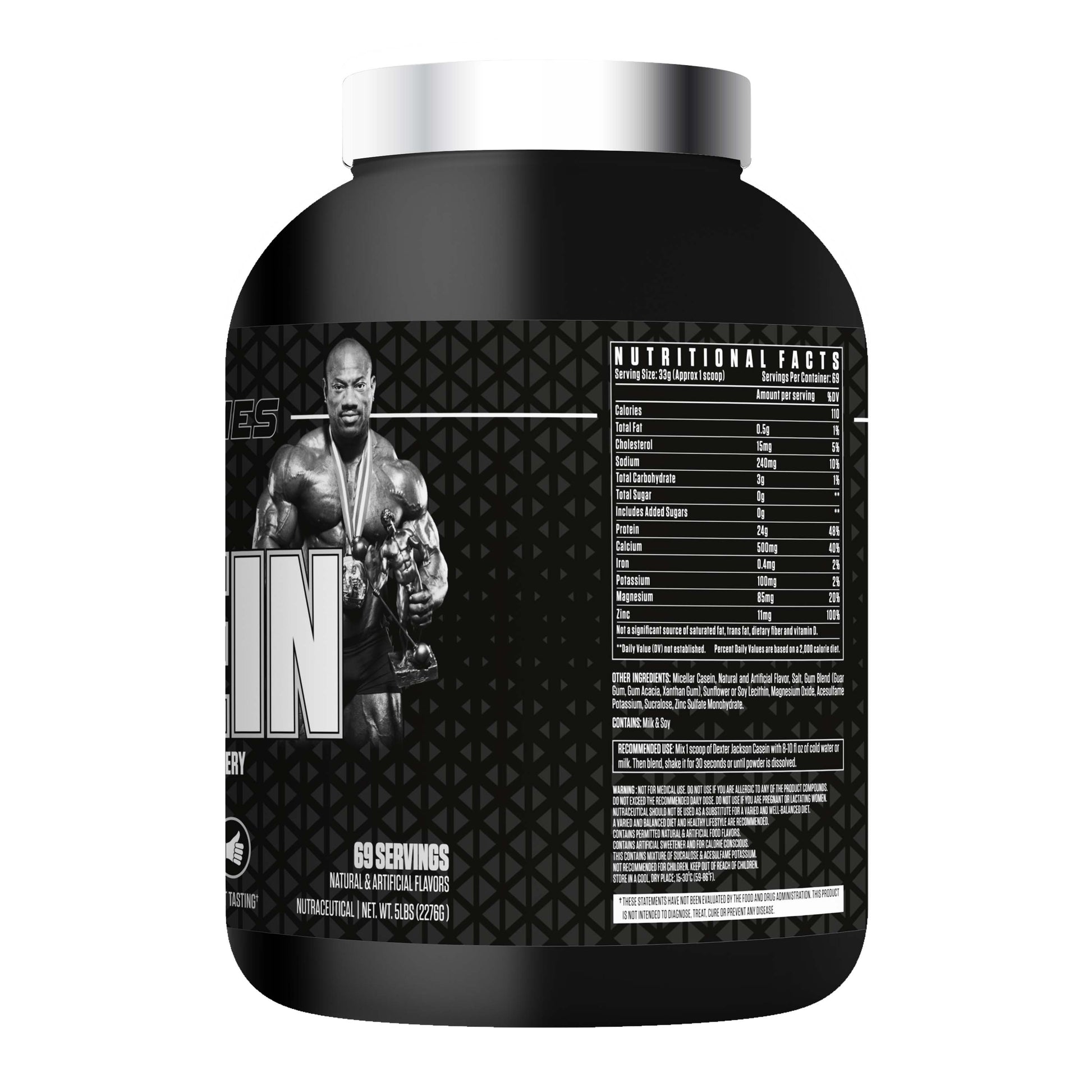 Unleash the power of sustained muscle recovery with Dexter Jackson Black Series Casein Protein, an advanced slow-release protein blend crafted to fuel your muscles between meals and throughout the night. With 24g of protein per serving, this casein formula is designed to support optimal repair and growth, keeping you in a muscle-building state even when you sleep. Enhanced with 9g of Essential Amino Acids (EAA) and 5g of Branched-Chain Amino Acids (BCAA), this blend ensures you get all the nutrients required for effective muscle recovery and development.
