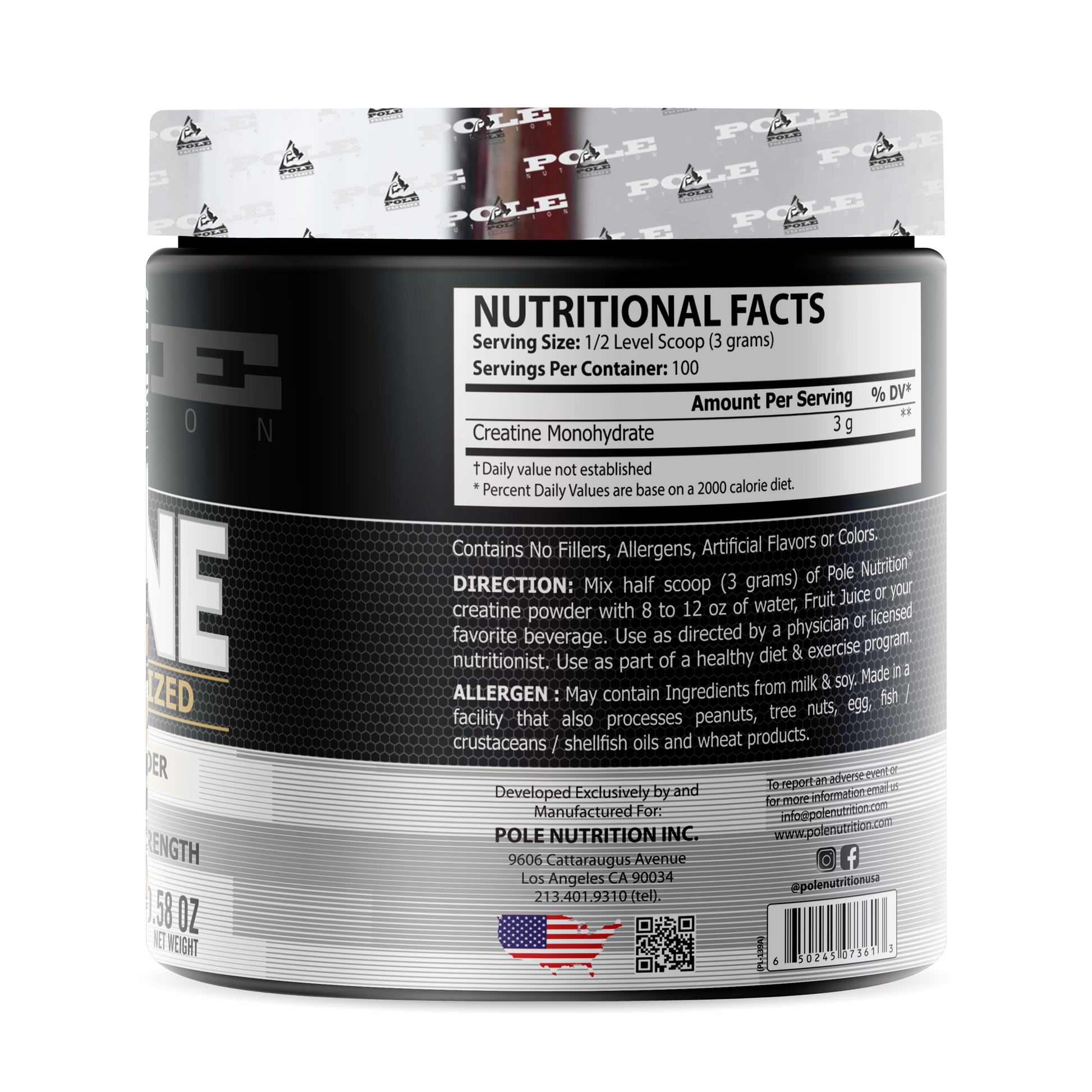 Pole Nutrition Creatine Monohydrate is a high-quality, unflavored creatine powder designed to enhance your strength, power, and muscle performance. This micronized pharmaceutical-grade powder ensures superior absorption, allowing you to push through intense workouts and reach your athletic goals.