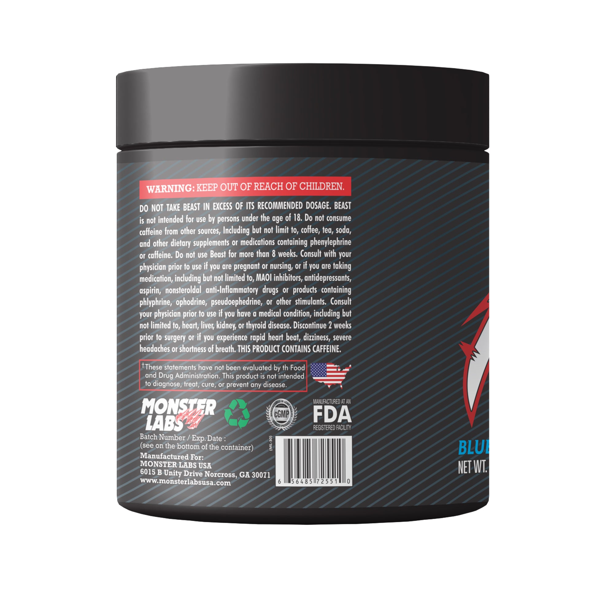 Monster Labs Beast V2, Pre Workout, 35 Servings (Blue Raspberry)